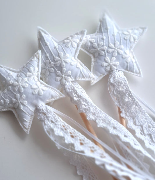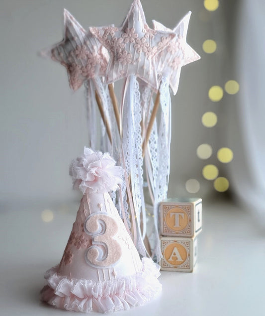 Welcome to our enchanting "Play Wands" collection, where magic and whimsy come to life. Our beautifully crafted wands are designed to spark joy and imagination in every child's heart. From matching sets that perfectly complement our elegant party hats to festive and seasonal wands , each piece is made with love and attention to detail. Featuring delicate floral accents, charming ribbons, and lightweight handles for effortless waving, our play wands are perfect for birthdays, holidays, and everyday adventures. Let your little one feel like the star of the show with our magical wands, adding a touch of enchantment to every celebration.