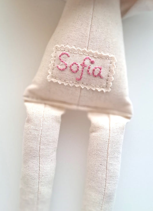 Meet our Veronica Bunnies – beautiful handmade soft toy rabbits crafted from natural linen fabric with hand-embroidered eyes and nose. Measuring approximately 46cm from ear to foot and filled with hypoallergenic stuffing, these charming bunnies are perfect as birthday presents, baby shower gifts, nursery decorations, or cherished family heirlooms. Discover the perfect companion for your little one in our enchanting bunny collection.