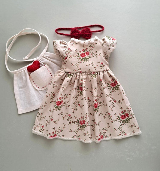 Valentine’s Veronica Bunny – Handmade Heirloom Bunny Doll, Vintage Rose Floral Dress
